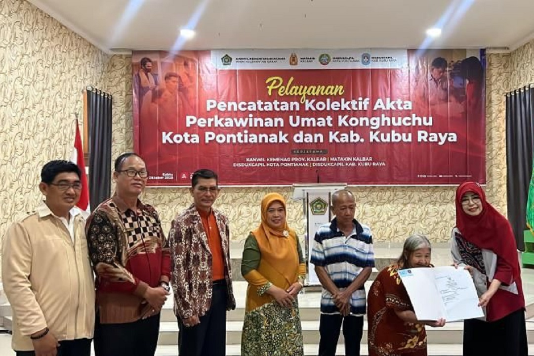 Kolaborasi ini diwujudkan dengan memfasilitasi pencatatan dan penerbitan akta perkawinan secara kolektif. Kegiatan yang digelar di Aula Kanwil Kemenag Kalbar pada Sabtu (4/10/2025) tersebut berhasil menerbitkan akta perkawinan untuk 15 pasangan umat Khonghucu dari Kota Pontianak.