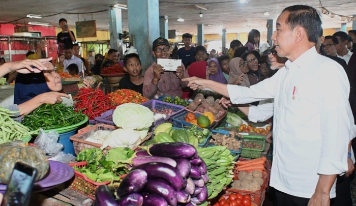 Tak hanya itu, Presiden Jokowi juga menyapa dan berinteraksi langsung dengan masyarakat yang memadati pasar tersebut. Ada warga yang meminta foto, ada juga yang meminta tanda tangan.