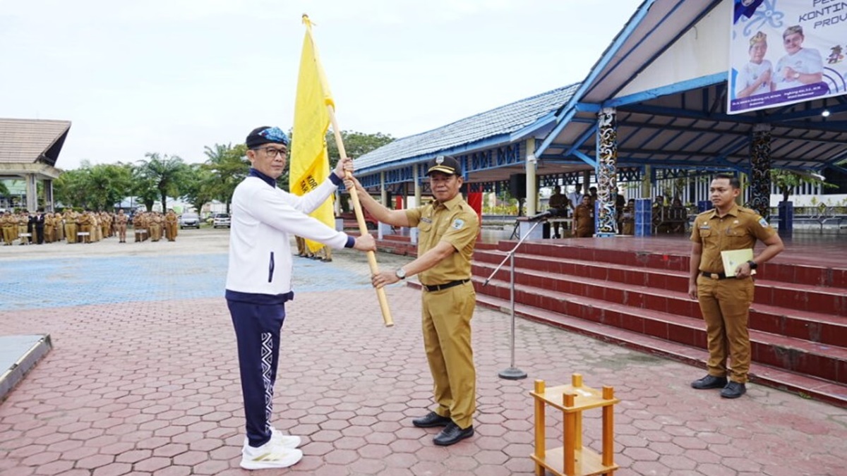 Pada kesempatan itu, Datu Iqro menyerahkan bendera kontingen sekaligus memberikan pesan agar para atlet tampil maksimal dengan tetap menjunjung tinggi sportivitas.