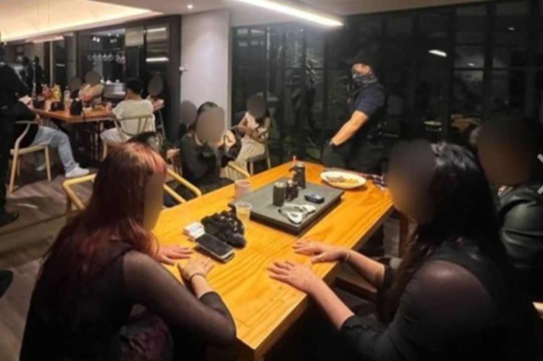 Dari total 57 pengunjung pesta yang ditahan untuk diperiksa, 32 orang yang berusia antara 22 hingga 38 tahun ditahan karena diduga kuat terlibat dalam aktivitas penyalahgunaan dan peredaran obat-obatan terlarang.