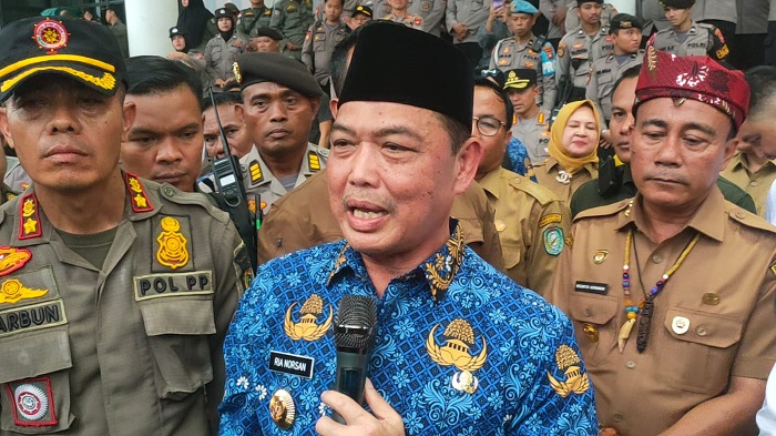 Dalam aksi tersebut, Gubernur Kalimantan Barat, Ria Norsan turun langsung menemui masa.