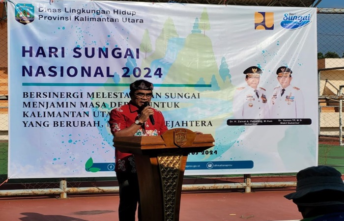 KabarKalimantan.id — Gubernur Kalimantan Utara (Kaltara), DR (HC) H. Zainal A. Paliwang, memberikan kata sambutan yang diwakili Sekretaris Provinsi (Sekprov) Kaltara, Dr. H. Suriansyah, membuka secara resmi kegiatan Bersih Sungai dan Penanaman Mangrove dalam rangka Peringatan Hari Sungai Nasional Tahun 2024..