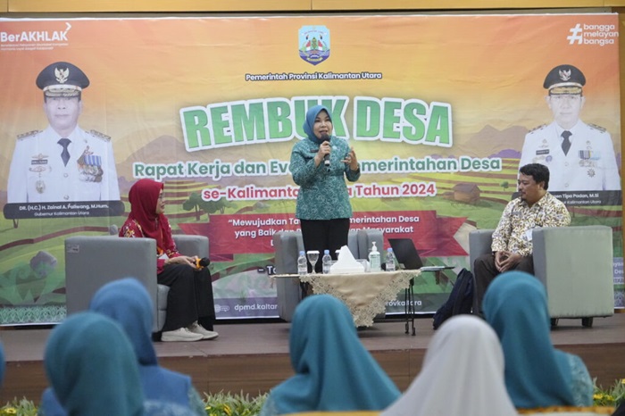 KabarKalimantan.id — Kesejahteraan keluarga menjadi salah satu tolak ukur dan barometer dalam pembangunan. Peran Tim Penggerak Pemberdayaan dan Kesejahteraan Keluarga (TP-PKK) dalam membantu dan mendukung pemerintah desa serta kelurahan dalam meningkatkan kesejahteraan keluarga jadi materi yang disampaikan Rahmawati Zainal, pada Rapat Kerja dan Evaluasi Pemerintah Desa se-Kalimantan Utara tahun 2024.