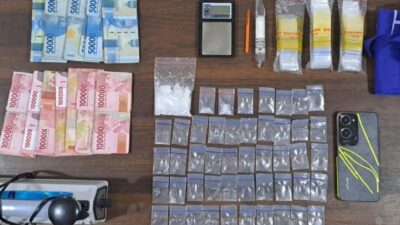 Polres Kukar berhasil amankan tiga pelaku pengedar narkoba di Muara Jawa. Total 46,53 gram sabu, uang tunai, dan timbangan digital disita.